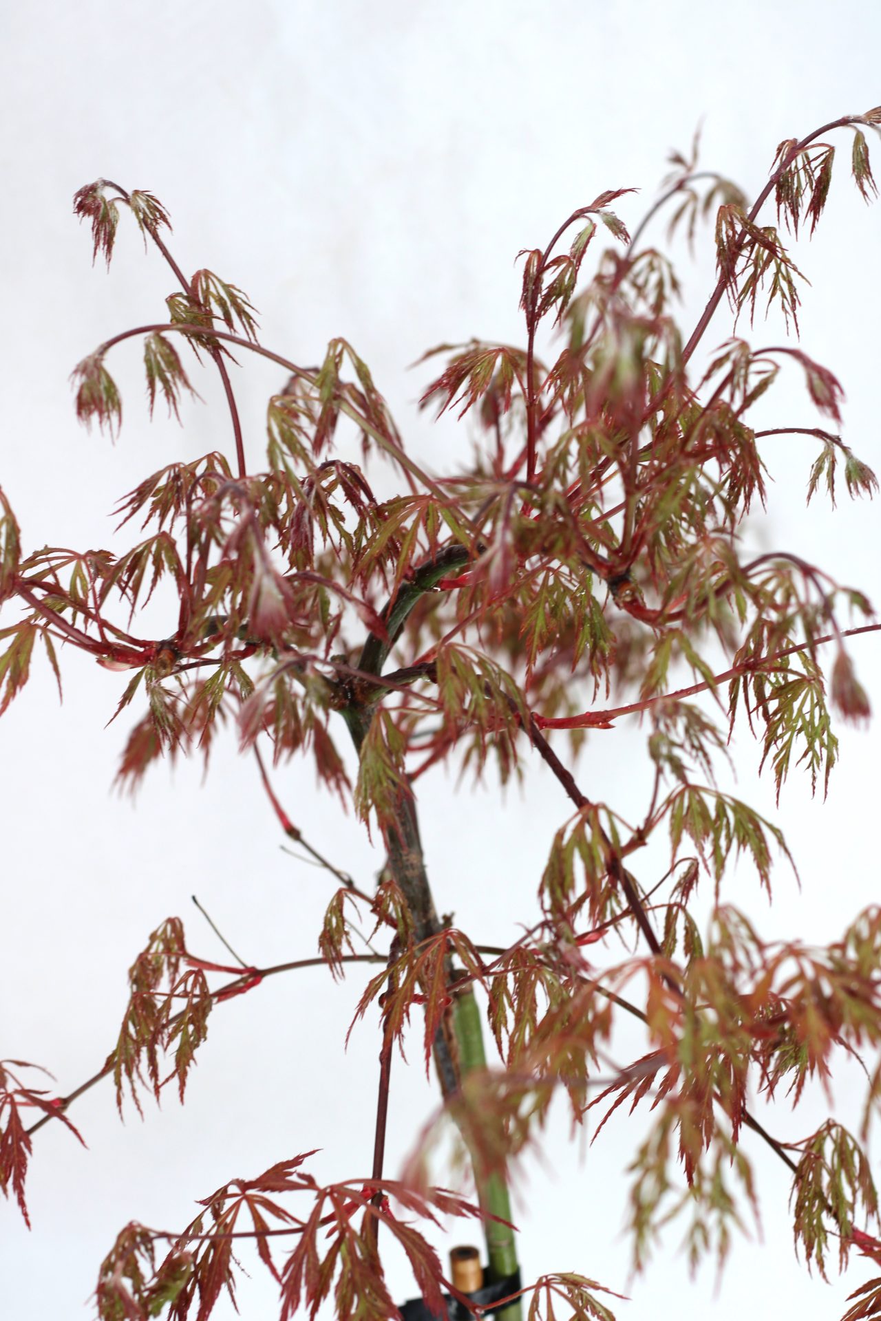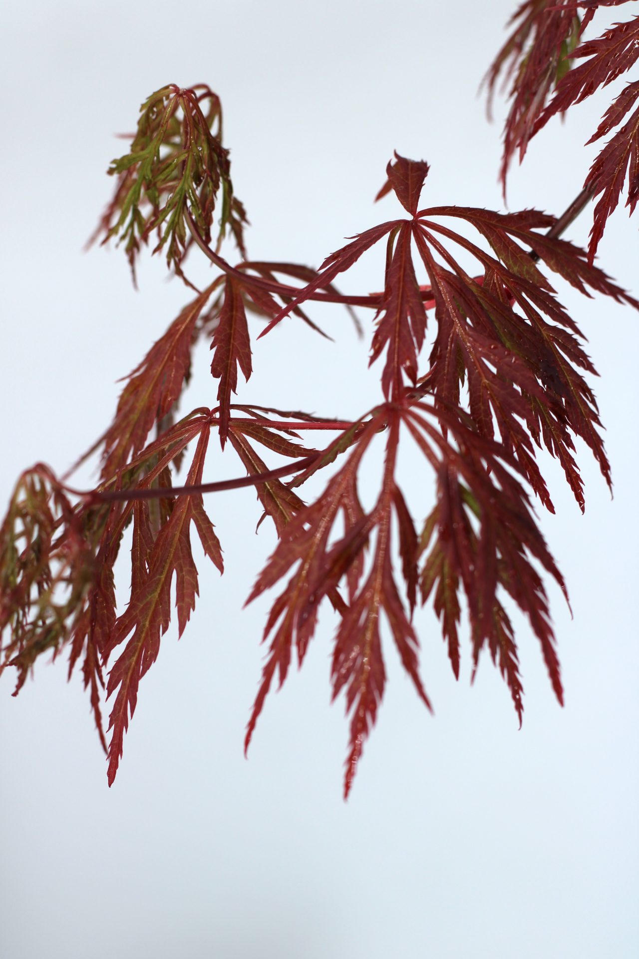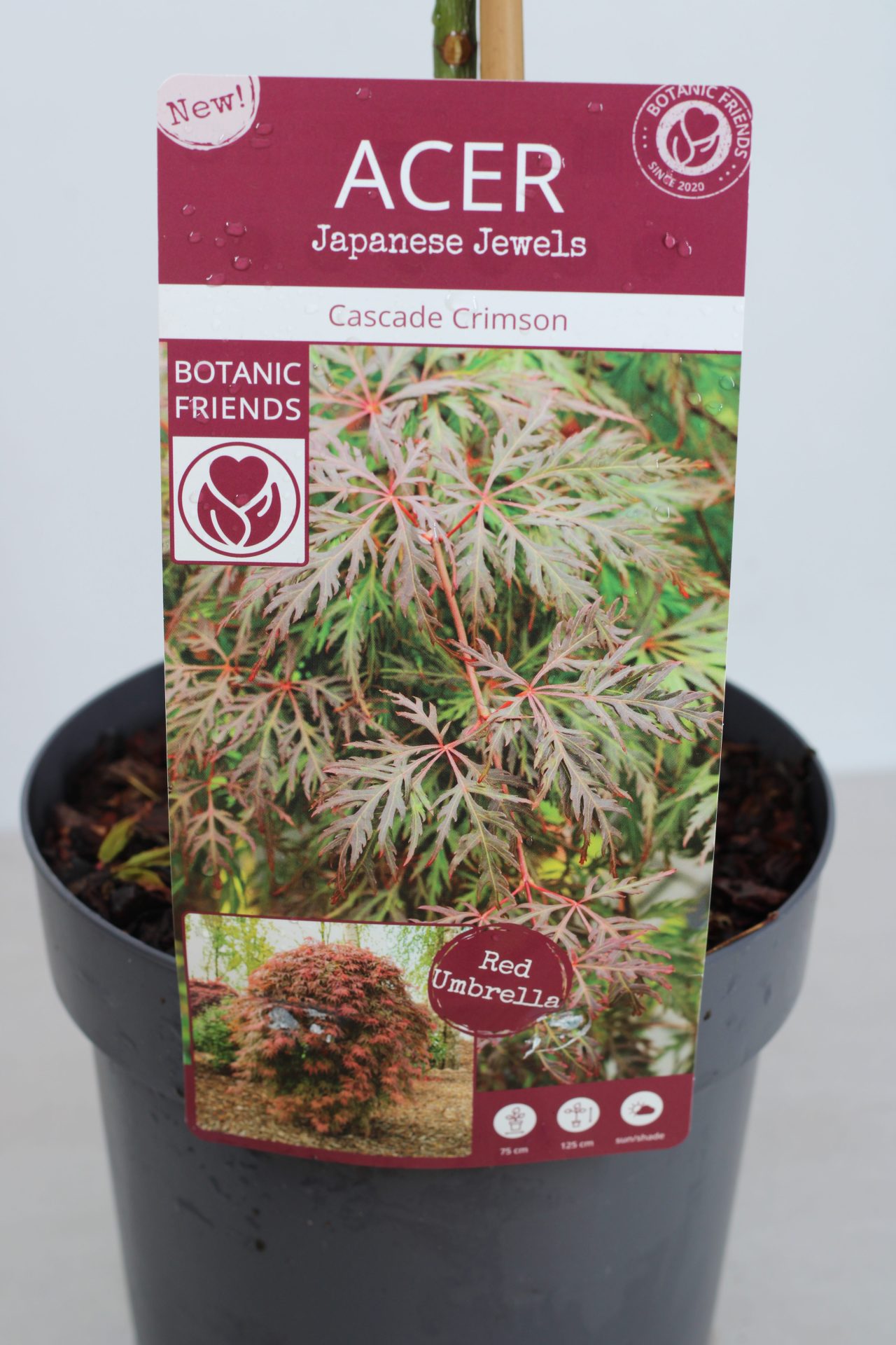 O Acer palmatum ‘Cascade Crimson’ é uma pequena árvore deslumbrante que proporciona um espetáculo visual em todas as estações. A sua folhagem delicada e graciosa cria uma textura suave e fluida, perfeitamente combinada com o seu elegante porte pendente que se estende graciosamente a partir da copa. Na primavera, as novas folhas desabrocham num vermelho luminoso, mudando gradualmente para tons mais verdes durante o verão, antes de atingirem um vermelho carmesim vibrante no outono.