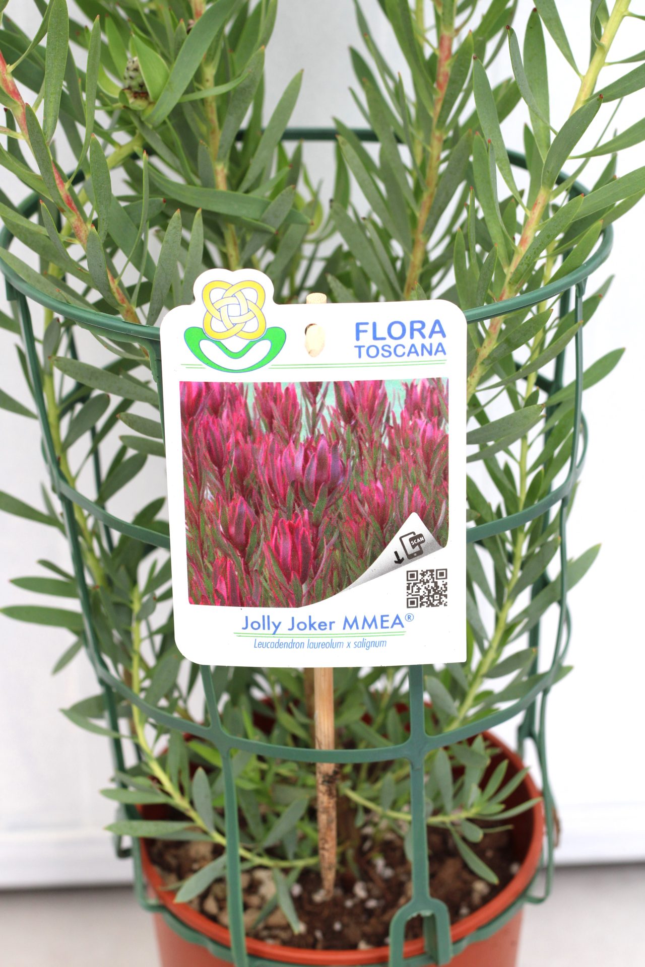 Os Leucadendron são arbustos ou pequenas árvores, em sua maioria perenes. Possuem folhas coriáceas que variam em forma e tamanho dependendo da espécie. As flores são, geralmente, pequenas e discretas, mas são cercadas por brácteas coloridas e marcantes que dominam a aparência da inflorescência. O leucadendron jolly joker é uma explosão de cores durante o outono e o inverno com um vermelho intenso e produz flores de corte duradouras. É uma excelente opção para jardins de baixa manutenção.