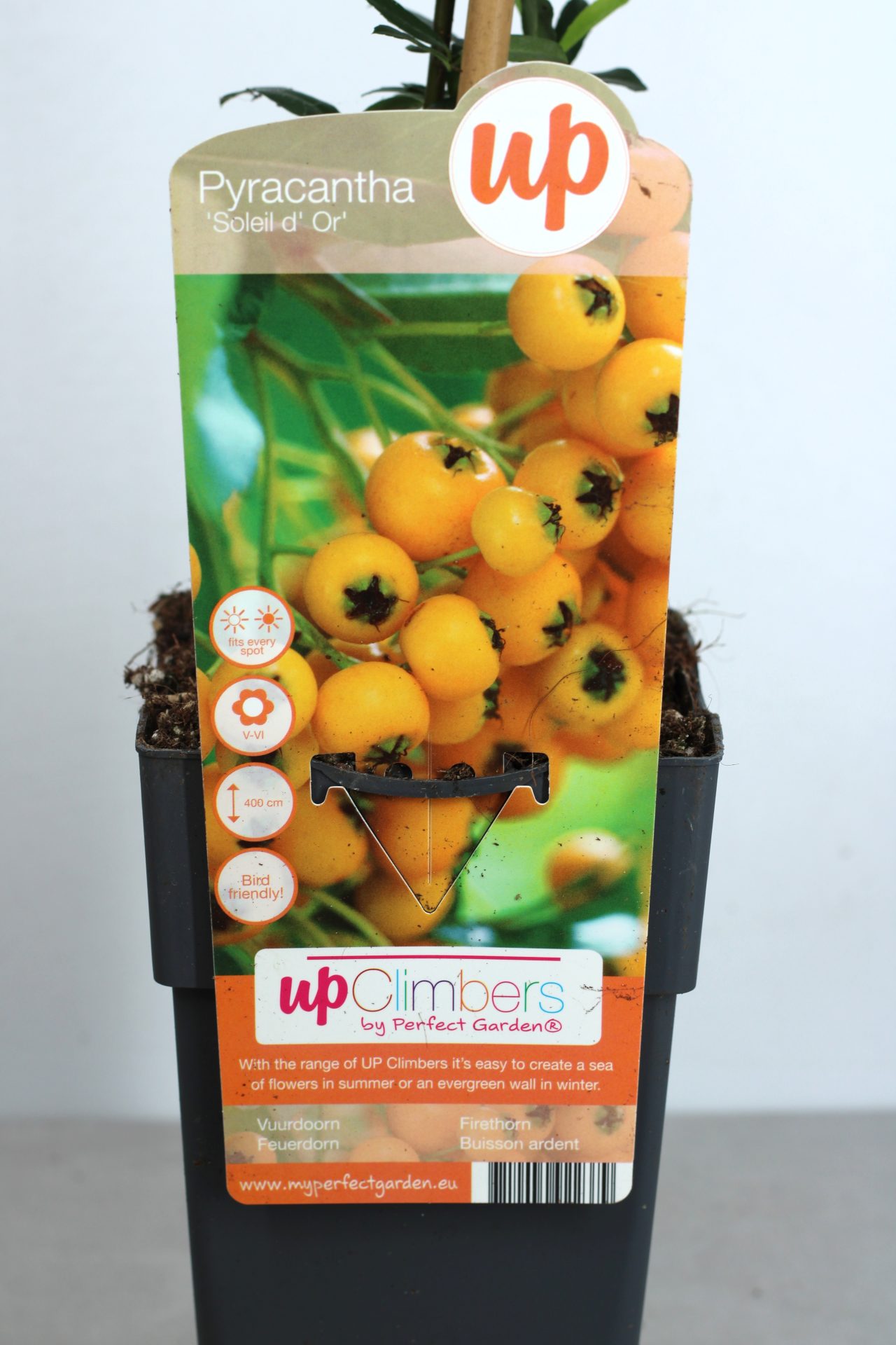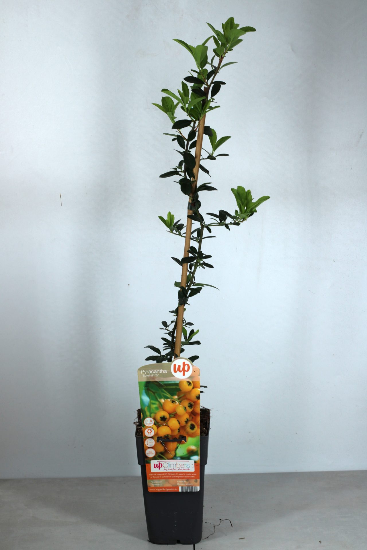 A pyracantha é uma planta ereta, perene com uma folhagem verde exuberante que forma um belo fundo para a profusão de pequenas flores brancas no final da primavera que, posteriormente, se transformam em pequenos bagos amarelos ou laranja, que proporcionam um espetáculo de cor incrível entre Outubro e Março.