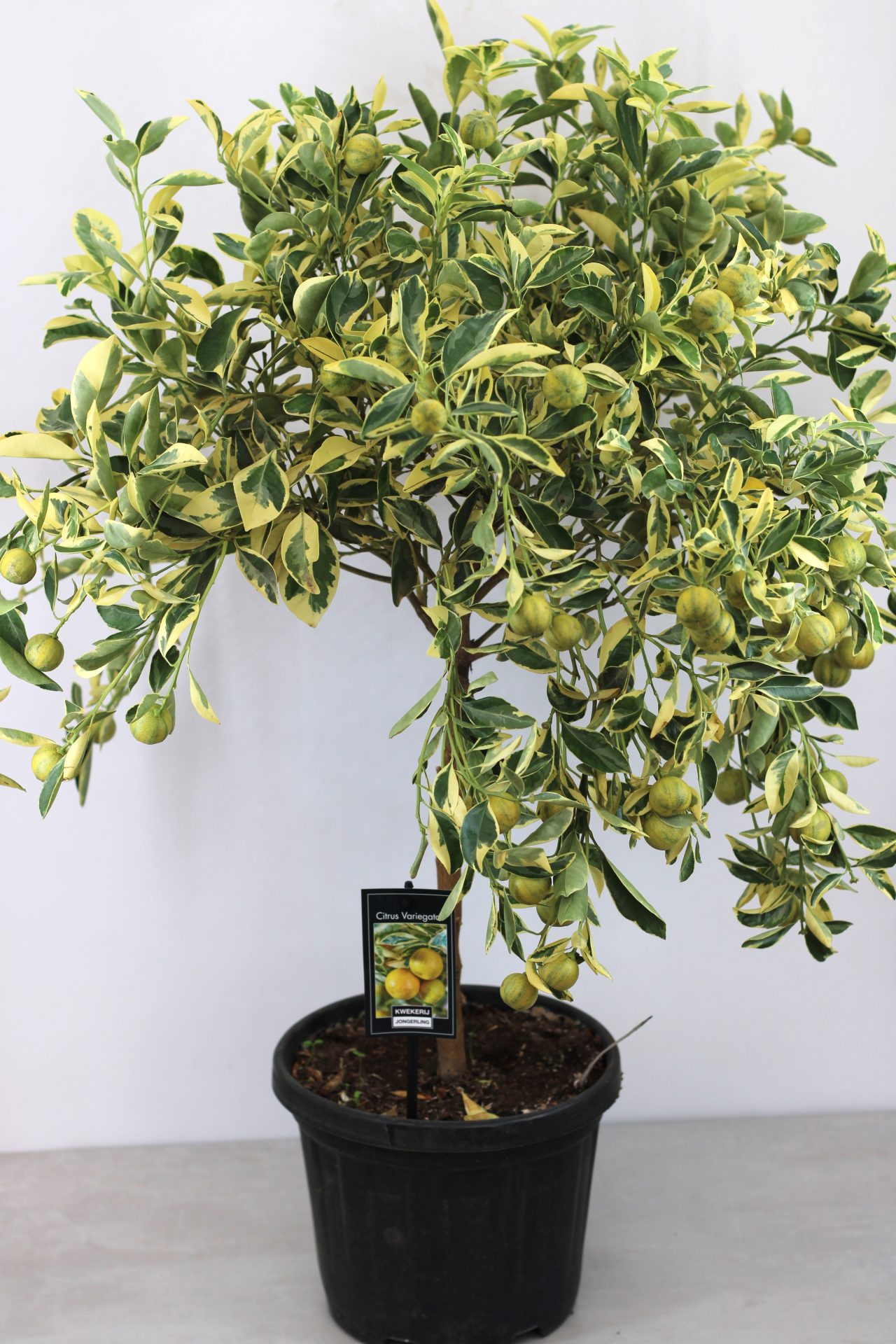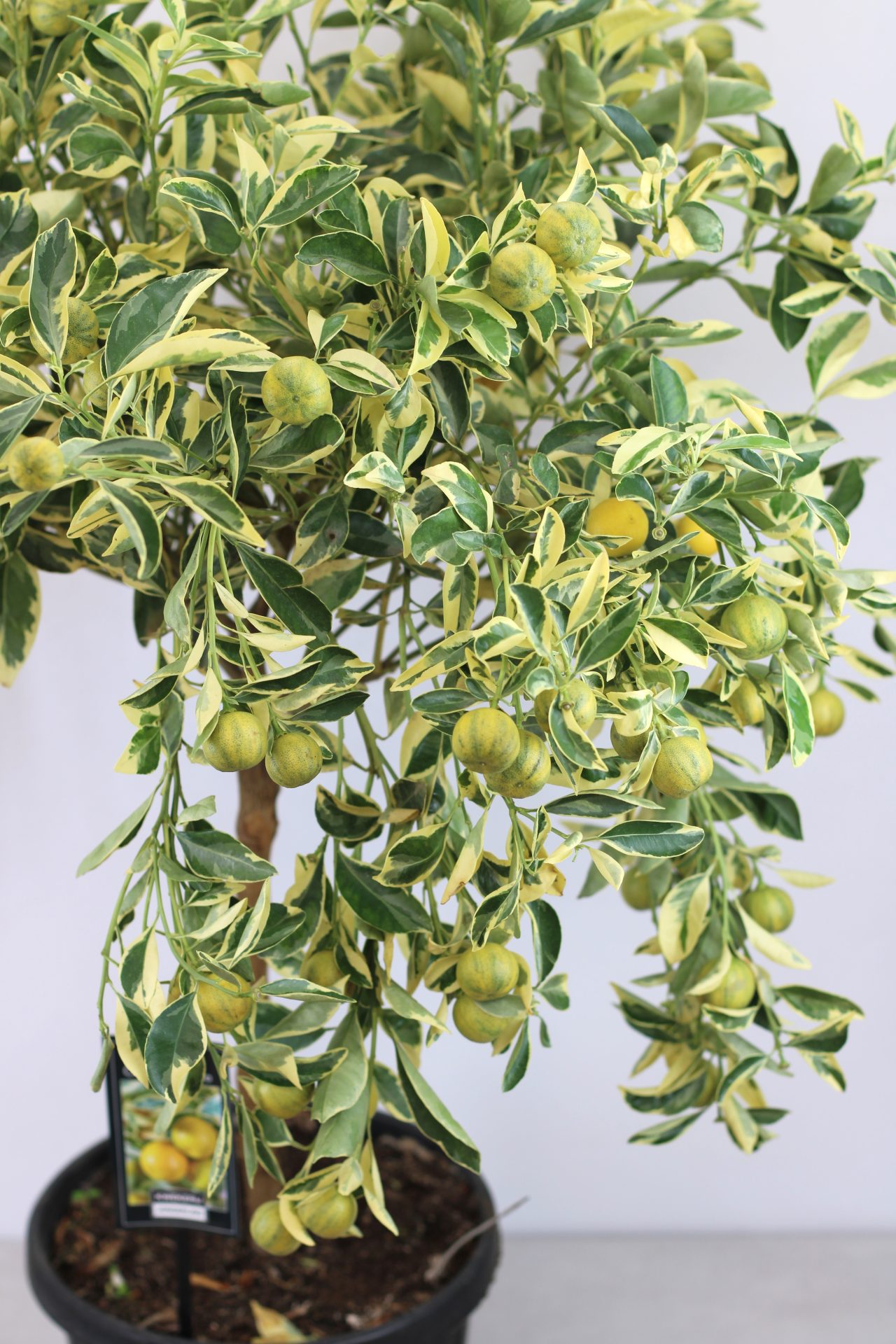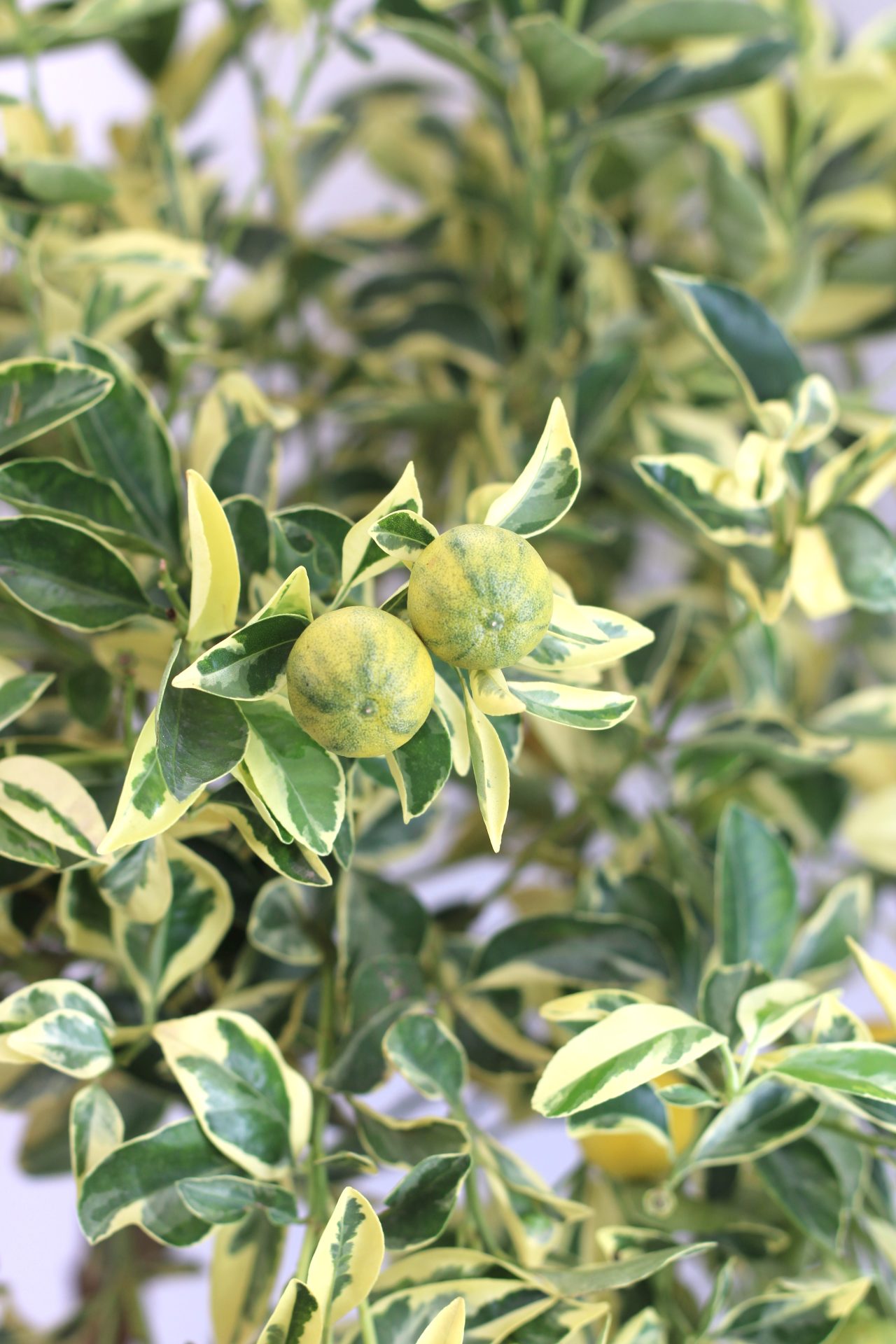 A tangerina Satsuma variegata é uma variedade cítrica rara e particular, com folhas verdes e creme, dando à planta uma aparência espetacular. O fruto apresenta coloração laranja-escura quando totalmente maduro, mas também pode ser consumido verde. É doce e muito sumarenta, raramente, com sementes.